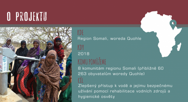 Tento projekt reaguje na situaci ve woredě (regionu) Quohle, která je přetížená množstvím vnitřních uprchlíků. Region Somali je zanedbanou oblastí s řadou problémů a nízkou úrovní infrastruktury, z toho vyplývá i omezený přístup k humanitární pomoci. ADRA je v komunitách dobře známá, zároveň má díky několikaleté implementaci WASH projektů v Etiopii dobré vztahy s vládními i místními autoritami. Výstupy projektu povedou k zajištění udržitelnějších zdrojů obživy a udržitelnému životu obyvatel v 8 komunitách regionu, kde žije 60 263 lidí.