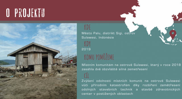 Projekt „Zvýšení odolnosti a připravenosti díky rozšíření zemětřesení odolných stavebních technik a podpory místních komunit na ostrově Sulawesi“ je podpořen z prostředků Ministerstva zahraničních věcí ČR v rámci humanitární pomoci poskytované do zahraničí.